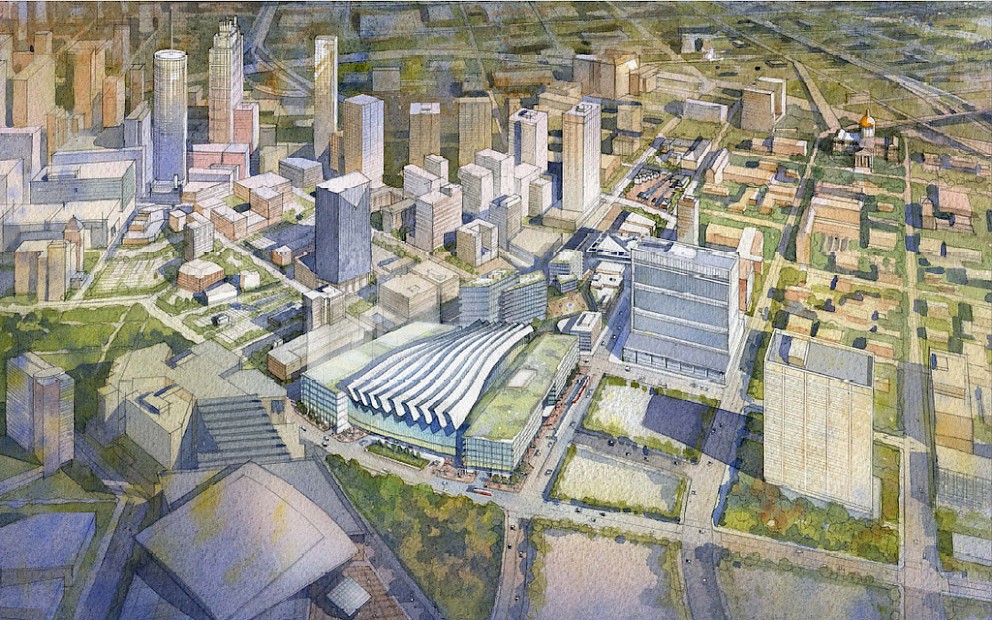The second proposal is the Atlanta Multimodal Passenger Terminal (MMPT), to be located west of Atlanta’s downtown in an area known as The Gulch. Located near the former sites of the city’s old trainstations, the MMPT would also serve Amtrak, MARTA and intercity bus services, as well as potential future commuter rail services. Envisioned as a grand gateway to Atlanta, the new station would cost $1.5 billion and transform 119 acres with new green space and high rise developments.