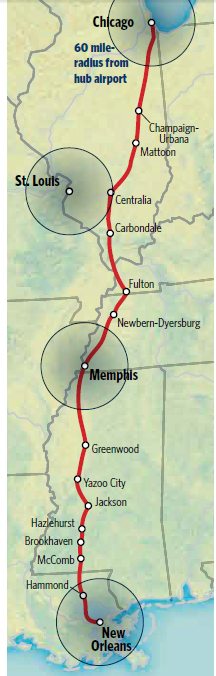 Trains have an inherent advantage over air because trains can make many intermediate stops quickly and without using large amounts of fuel.