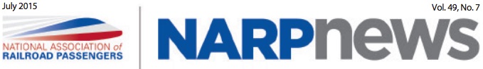 The July issue of the NARP Newsletter is now available. This month's issue includes legislative updates in the House of Representatives and the Senate on appropriations and rail safety. ColoRail President James Souby is this month's member profile, while NARP Silver Rail and Heritage Circle member Cathy Johnson is the donor profile. We laud Council Member Charlie Hamilton for receiving the Jack Martin Award for his efforts in upgrading the NARP website. Finally, we cover the hiring of Bruce Becker to the D.C. staff, offer a roundup of state news and unveil a new member discount on Via Canada.