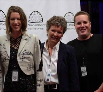 Rebecca Sansom, Director of Trainsforming America, with Debra Gerod and Matthew Parrent of Gruen at the New Urbanism Film Festival in LA. Gerod gave the film two thumbs up!