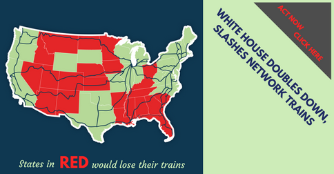 Washington, D.C.--The Trump Administration released a detailed budget proposal that guts funding to Amtrak’s long-distance trains, and slashes funding to key transit and transportation funding programs, threatening to accelerate the deterioration of physical infrastructure constricting economic growth in the U.S.